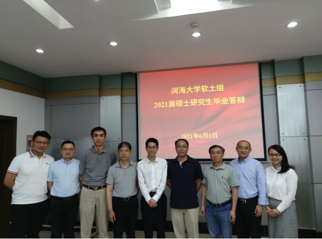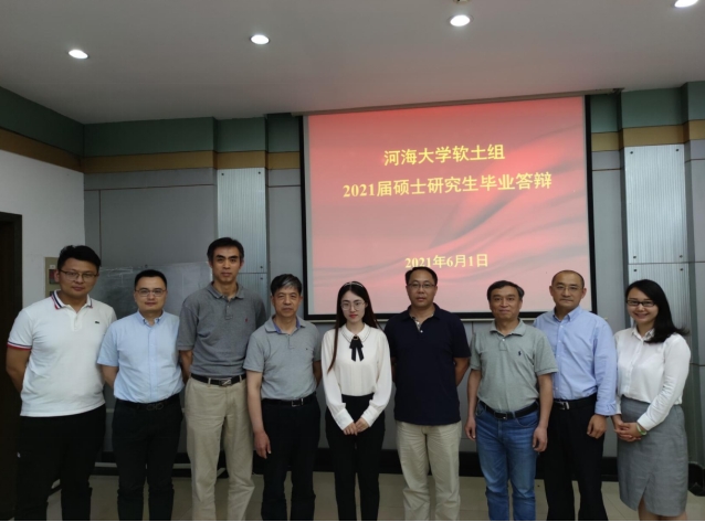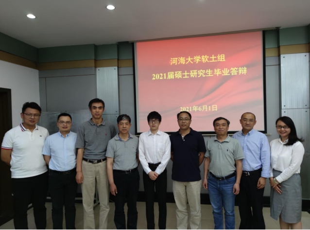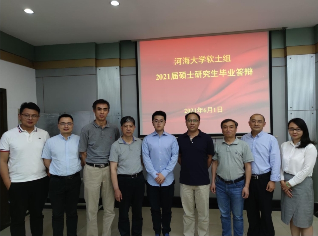 2021年6月1日下午13:30至18:30,在河海大学岩土楼一楼会议室举行了软土组2021届硕士研究生毕业答辩。出席的专家和秘书有:陈海军老师(主席)、施建勇老师、雷国辉老师、张坤勇老师、艾英钵老师、李玉萍老师、舒实老师、吴珣老师(秘书)。